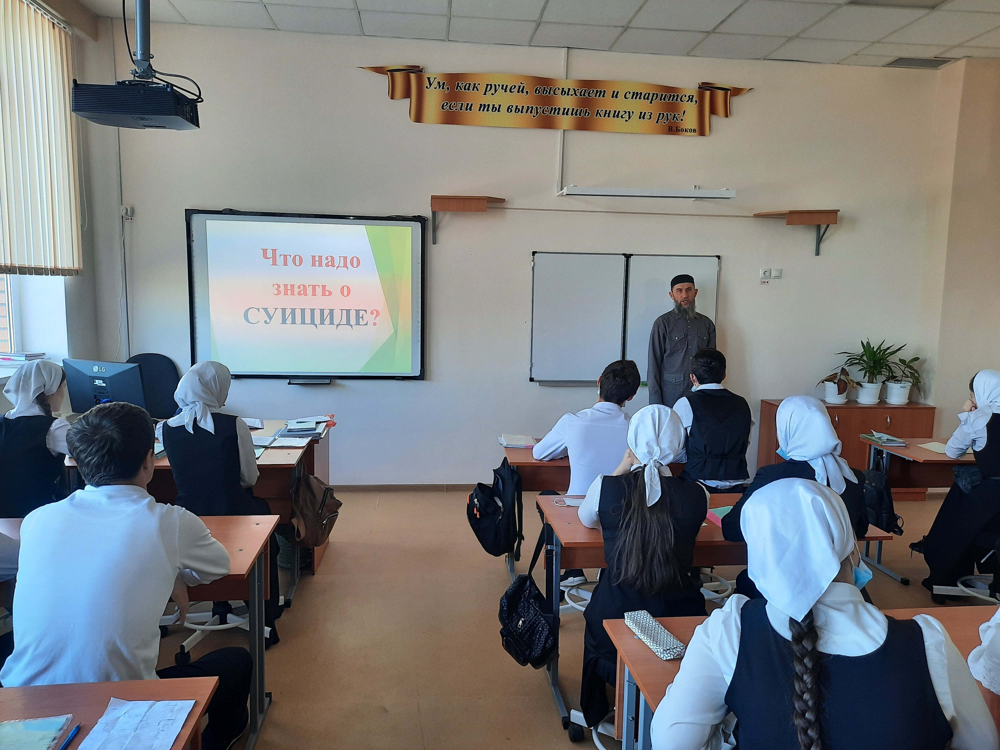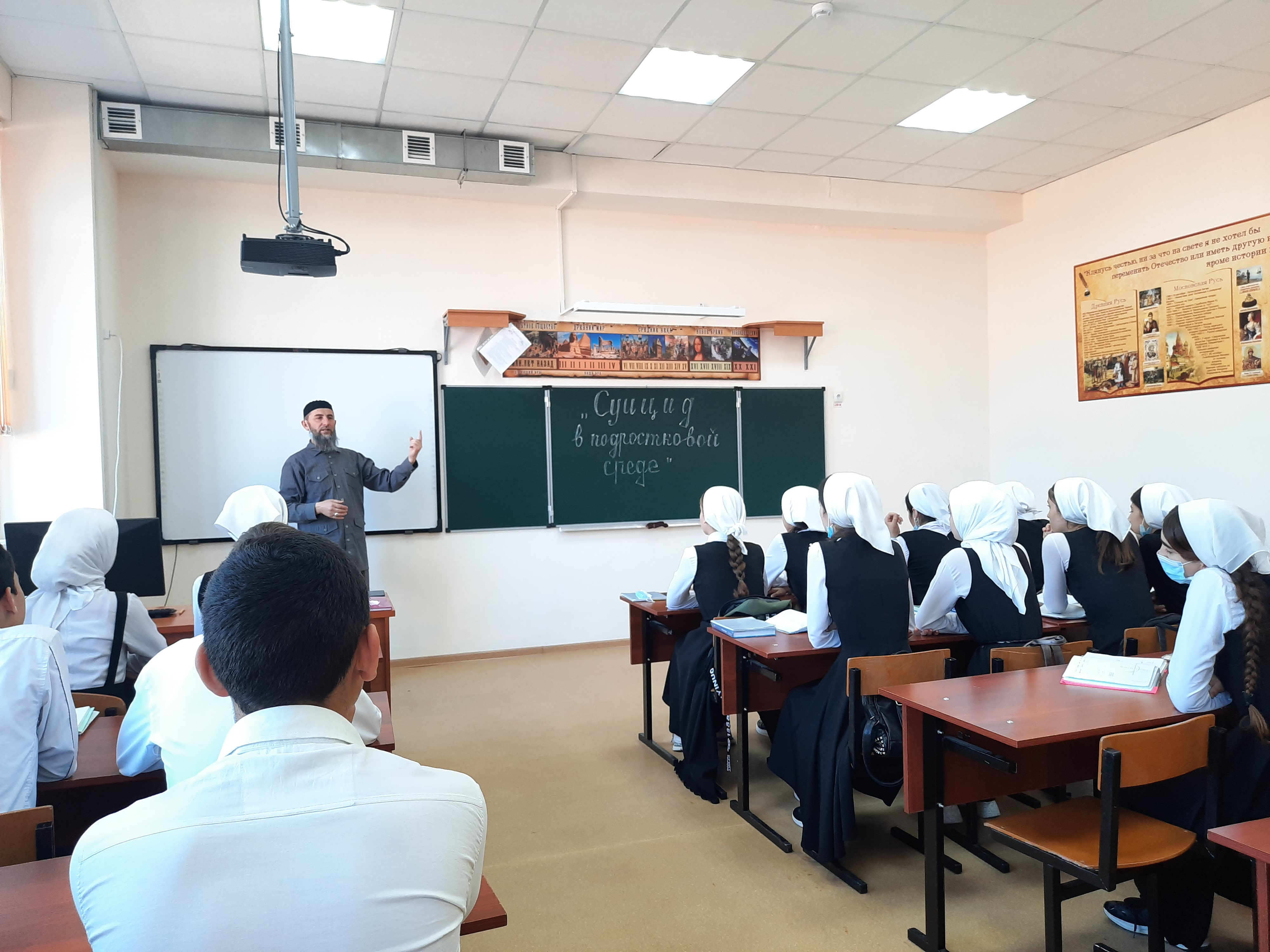 20.01.2022В целях предупреждения правонарушений в подростковой и молодежной среде, предупреждения суицидального и девиантного поведения несовершеннолетних, защиты от психологического насилия в пространстве современных интернет-технологий, 20-21 апреля 2022 года педагогом-организатором по ДНВ и Р Чадаевым А.У. проведены беседы среди учащихся 10-11 классов на темы «Суицид в подростковой среде», «Что надо знать о СУИЦИДЕ?»
