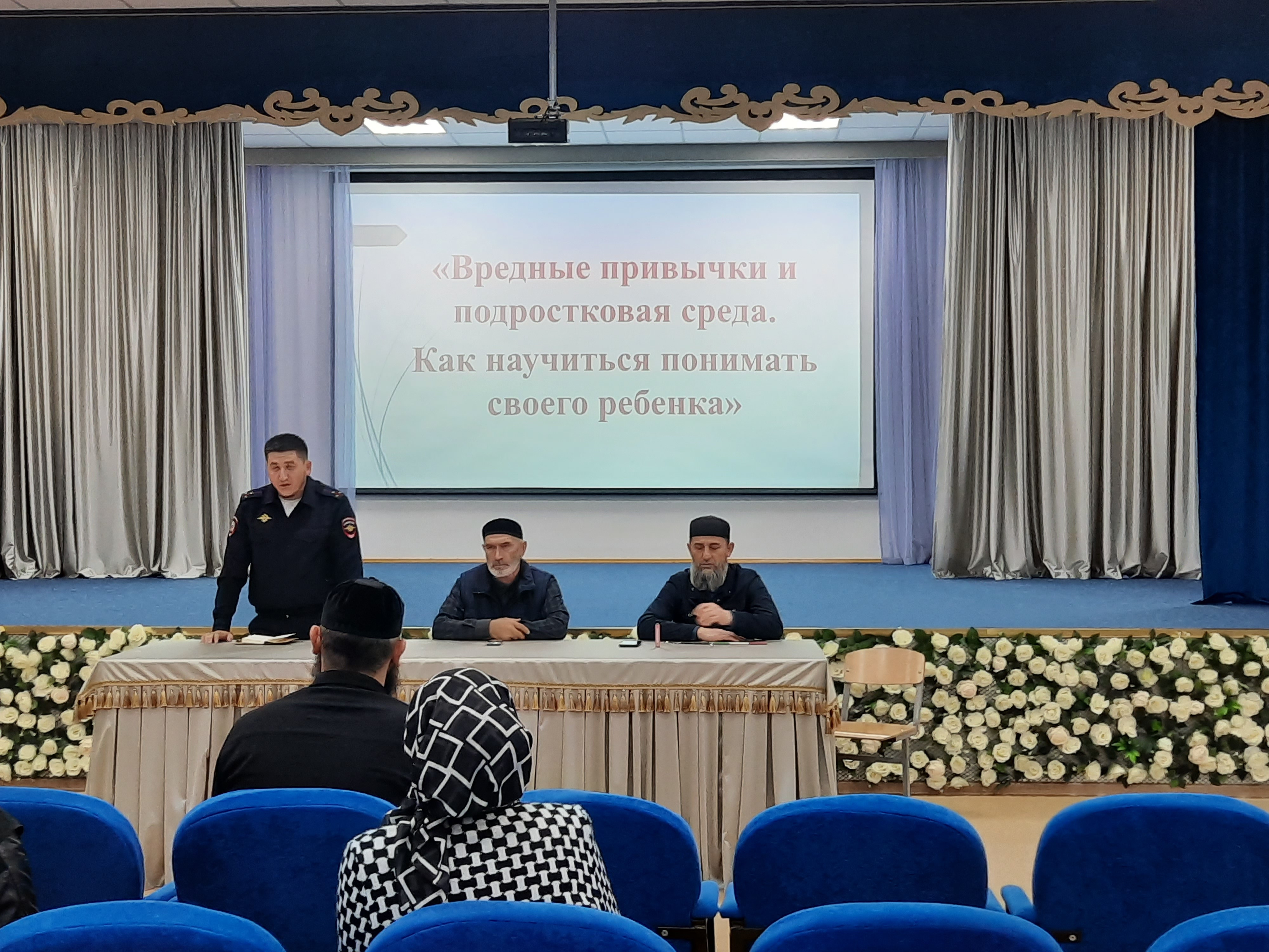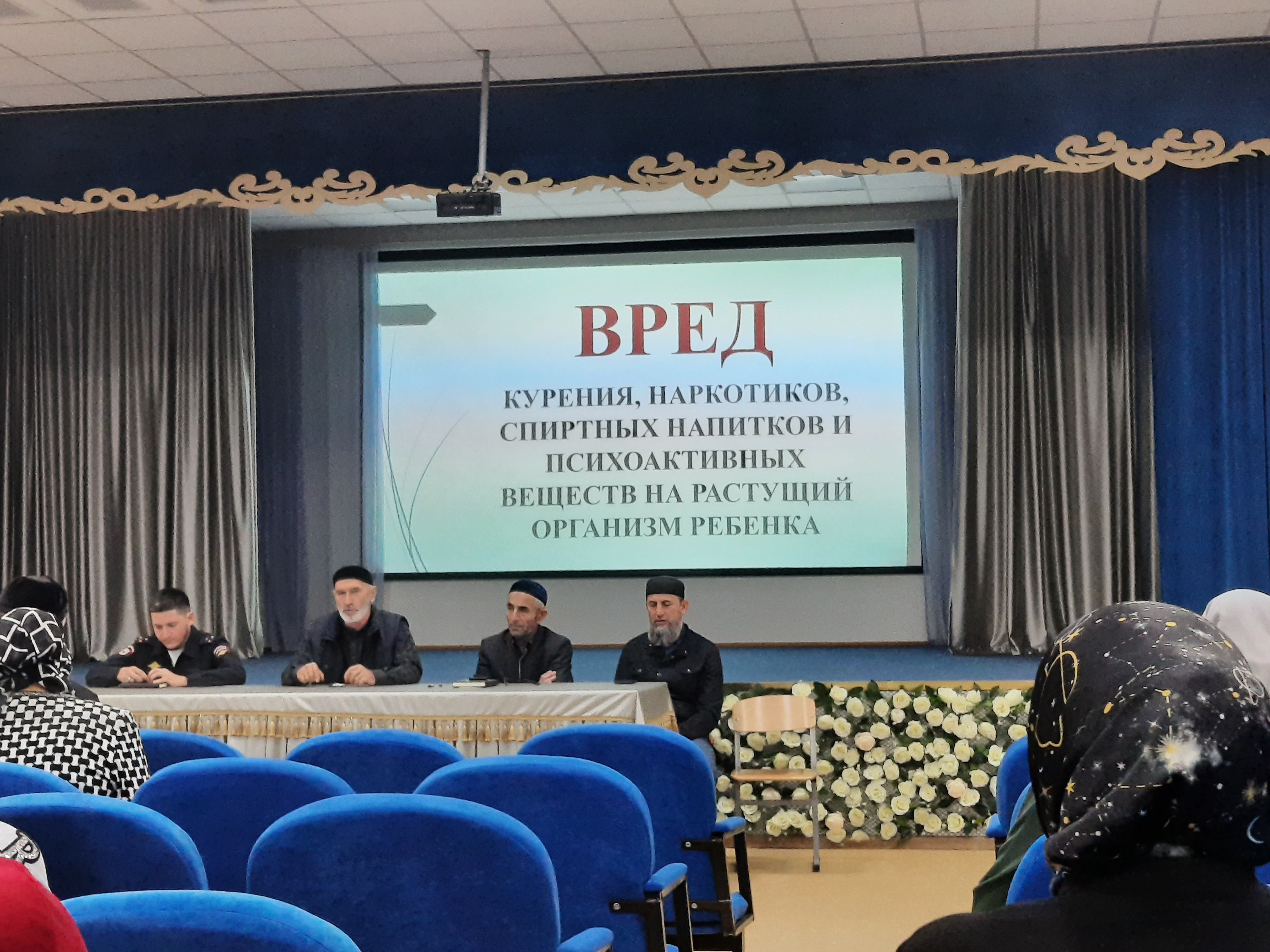 Собрание проходило 18.05.2022 г. Охват родителей 180 человек. Родителям были выданы памятки на тему «Профилактика наркомании среди подростков». На мероприятии выступили Имам села, педагог-организатор по ДНВ и Р, инспектор ПДН, администрация школы, родители.