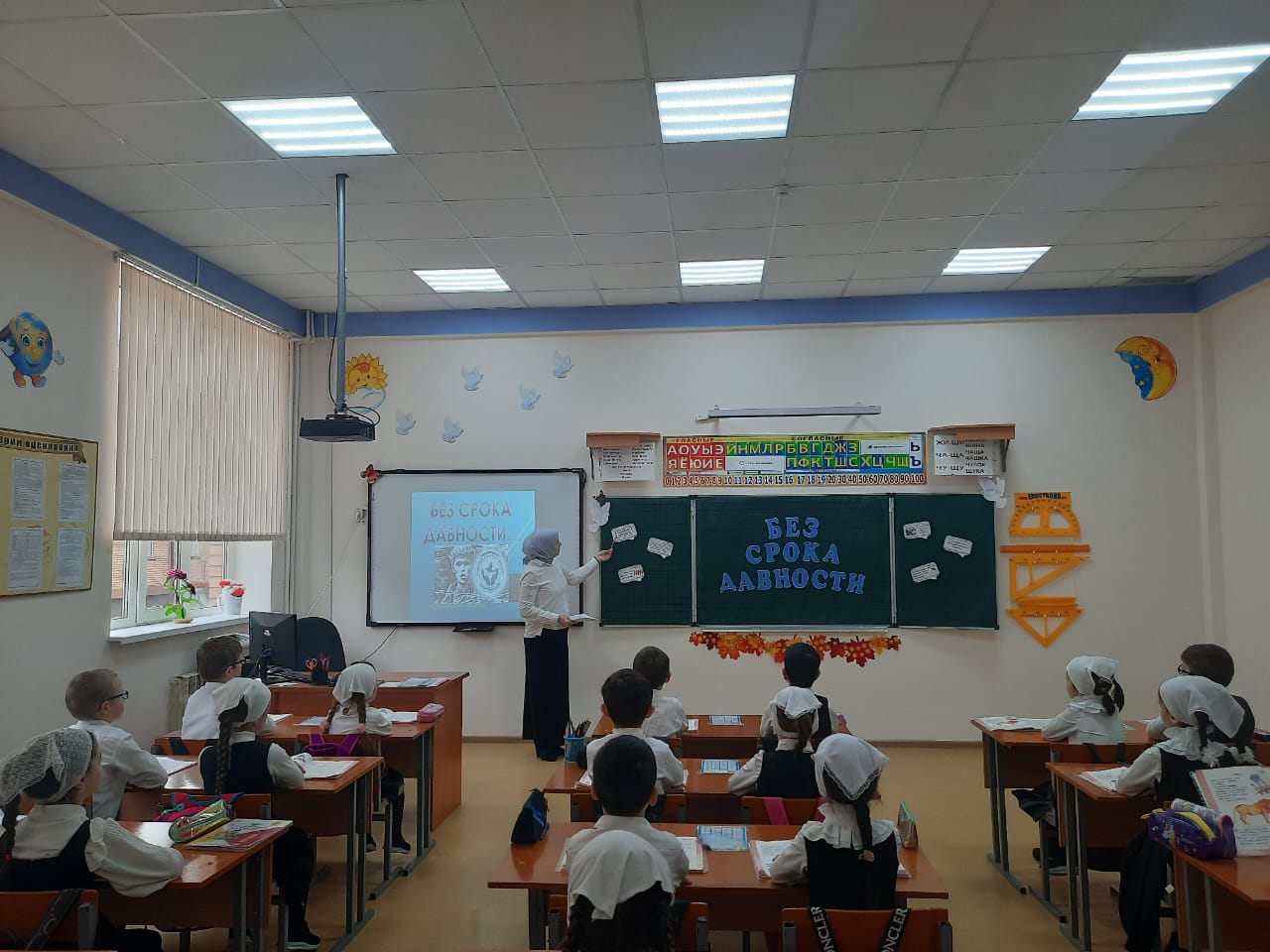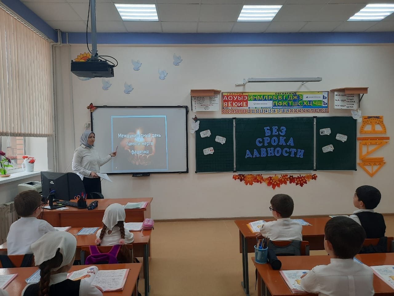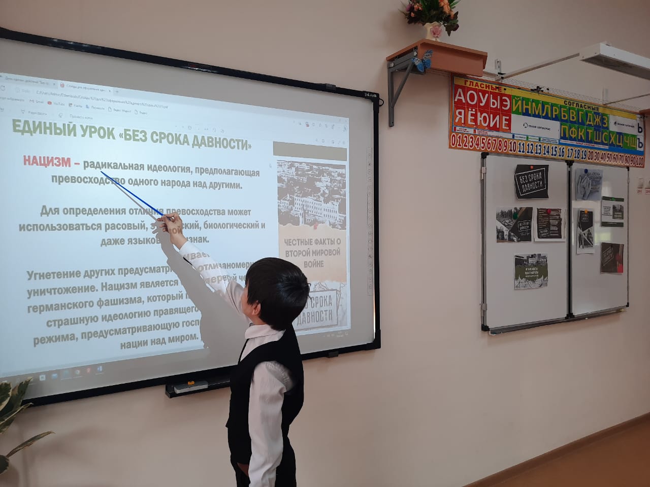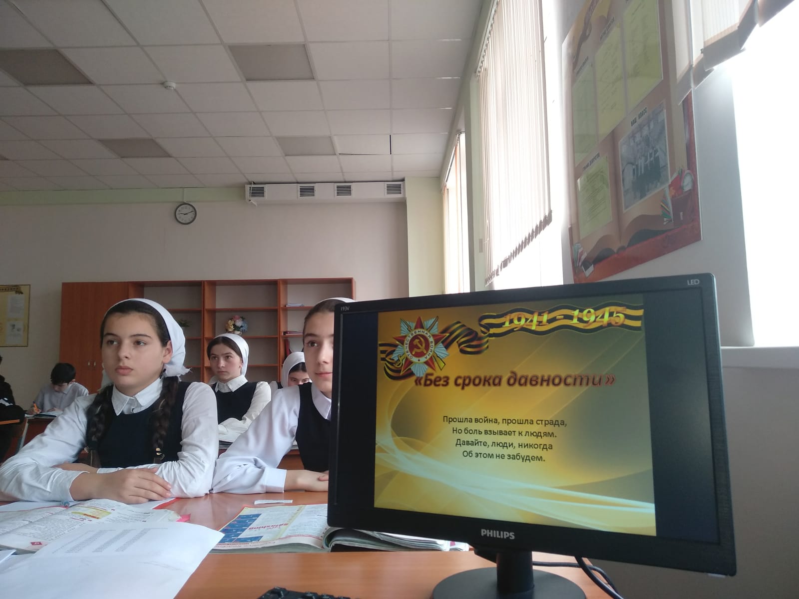 На уроке ребята посмотрели видеофильм «Без срока давности», обсудили понятия «геноцид», «фашизм», «нацизм», окунулись в историю одной из самых страшных трагедий прошлого времени, изучили факты и хронику преступлений нацистов в отношении мирных жителей, установили причинно-следственные связи между событиями прошлого и настоящего. После просмотра ребята выразили своё отношение к геноциду, к преступлениям, которые совершались против советского народа.