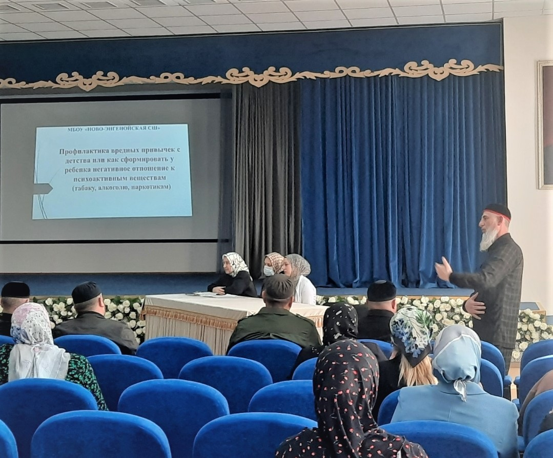 15.03.2025В МБОУ «Ново-Энгенойская СШ» проведено общешкольное родительское собрание. Основной целью мероприятия было ознакомление родителей с новой системой оценивания, процедурой проведения ЕГЭ в 2025 году, а также повышение мотивации обучающихся к достижению высоких результатов. На повестке дня были еще вопросы по предупреждению вовлечения подростков в противоправную и деструктивную деятельность. Особое внимание было уделено вопросу на повышение осведомлённости подростков о правовых последствиях участия в экстремистской деятельности, вовлечения в мошеннические схемы и совершения преступлений в сети Интернет; обсуждались меры профилактики незаконного оборота наркотических средств и психотропных веществ среди детей и молодёжи, вопросы сохранения и укрепления здоровья обучающихся. Завершая мероприятие, педагог-организатор по ДНВ Чадаев А.У. подчеркнул важность духовно-нравственного воспитания подрастающего поколения.